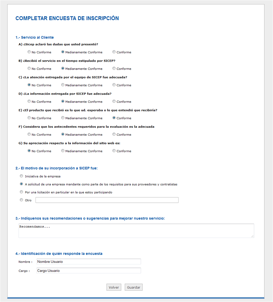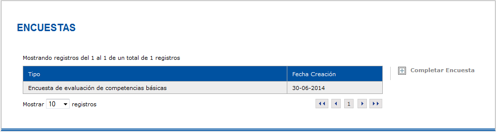 • Encuesta de Evaluación de Competencias Básicas o Auditoria SICEP: Debe ser respondida una vez que termine el proceso de Auditoría.